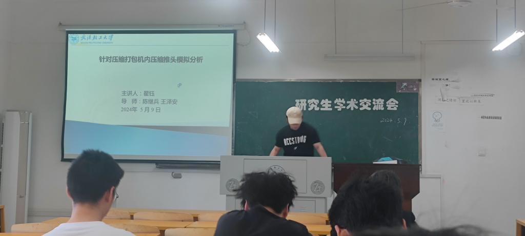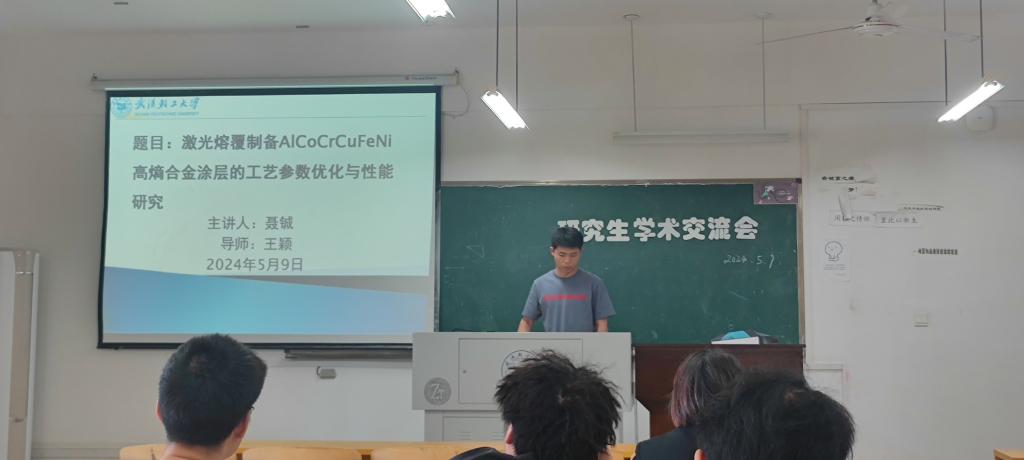 会议开始后,2022级硕士生李冬就近期学习进行汇报;接着,由2022级研究生聂铖就“激光熔覆制备AICoCrCuFeNi高熵合金涂层的工艺参数优化与性能研究”做了实验成果分享;然后,由2022级研究生翟钰就“针对压缩打包机内压缩推头模拟分析”做了实验成果分享;最后,由2022级硕士生杨晖晗就实验进展分享了心得。