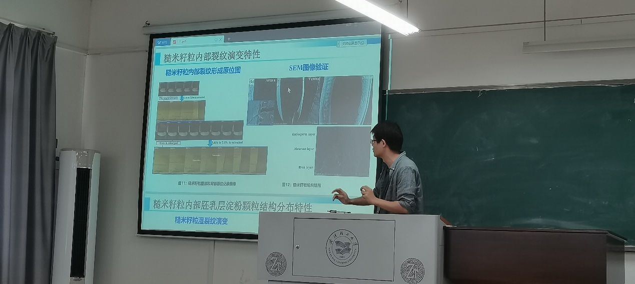 接着,肖轩同学就硕士期间得工作总结进行了汇报,内容包括糙米籽粒在准静态压缩下破裂特性和裂纹形成机理分析、大米淀粉凝胶交联结构-流变特性机理分析、大米淀粉凝胶基于CFD的可打印性探索。王旺平经理提出米粒的受力状态与实际具有差异性,如何将实际转化为理论模型,吻合度需着重考虑,且目前只做了单因素,后续应将考虑更多影响因素;阳学进经理关于应力集中是否合理,验证方法是否正确提出了询问,并建议对研究结果进行深入挖掘;钟文老师建议再次确定有限元理论模型,保证理论基础正确。