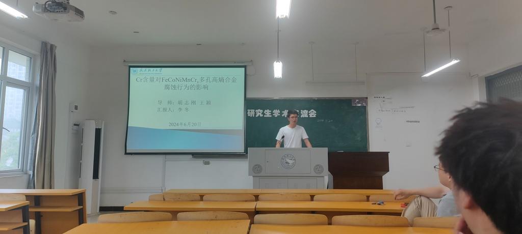 会议开始后,2022级硕士生陈俊升就“L-PBFA1-3Fe-2Mn耐热铝合金组织与性能研究”进行汇报;接着,由2022级研究生石倩玉就“增材制造耐热铝合金相关性能研究”做了实验成果分享;然后,由2023级研究生马炎漫就“不基于ProCAST的柴油机飞轮铸造过程及工艺优化的模拟研究”做了实验成果分享;最后,由2022级硕士生李冬就“Cr含量对FeCoNiMnCr,多孔高熵合金腐蚀行为的影响”做了实验成果分享。