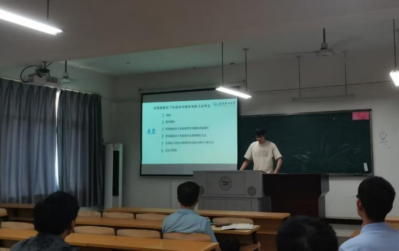 随后,廖绪鑫同学分享了“前倾艏碰撞下加筋板耐撞性预报”的研究成果,结合试验、数值模拟与理论分析,展示了耐撞性评估的完整流程。张敏老师、李诗龙教授等就逻辑清晰度、边界条件明确性及国际标准遵循等方面提出了宝贵意见。
