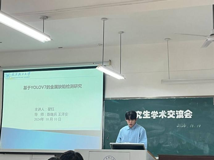 会议开始后,2022级硕士生夏镇琪就“激光熔覆Fe基、Co基、Ni基合金涂层的组织及性能研究”进行了学习汇报;紧接着,2022级研究生杨晖晗分享了“二氧化钒掺杂铬离子后进行碳包覆”的实验成果;随后,2022级硕士生翟钰就“基于YOLOV7的金属缺陷检测研究”进行了汇报;最后,2022级硕士生杨建军则就“生物质环境制粒的滚轧特性及结构参数优化”分享了其实验结果。