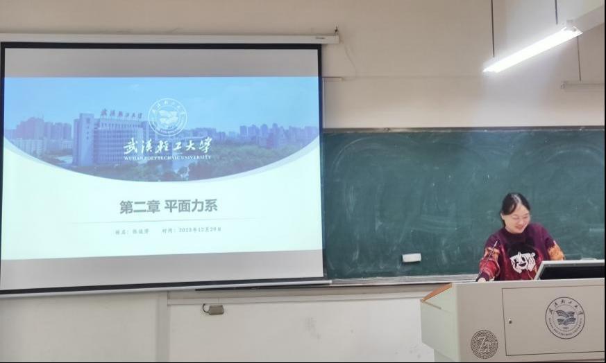 随后张俊芳老师讲授了“平面力系”公开课。张老师以钱塘江公铁大桥引入桁架结构的特点,对平面桁架的内力计算方法娓娓道来。课后,全系老师针对课程引导、课件设计和授课方式、技巧等方面进行点评和讨论交流。