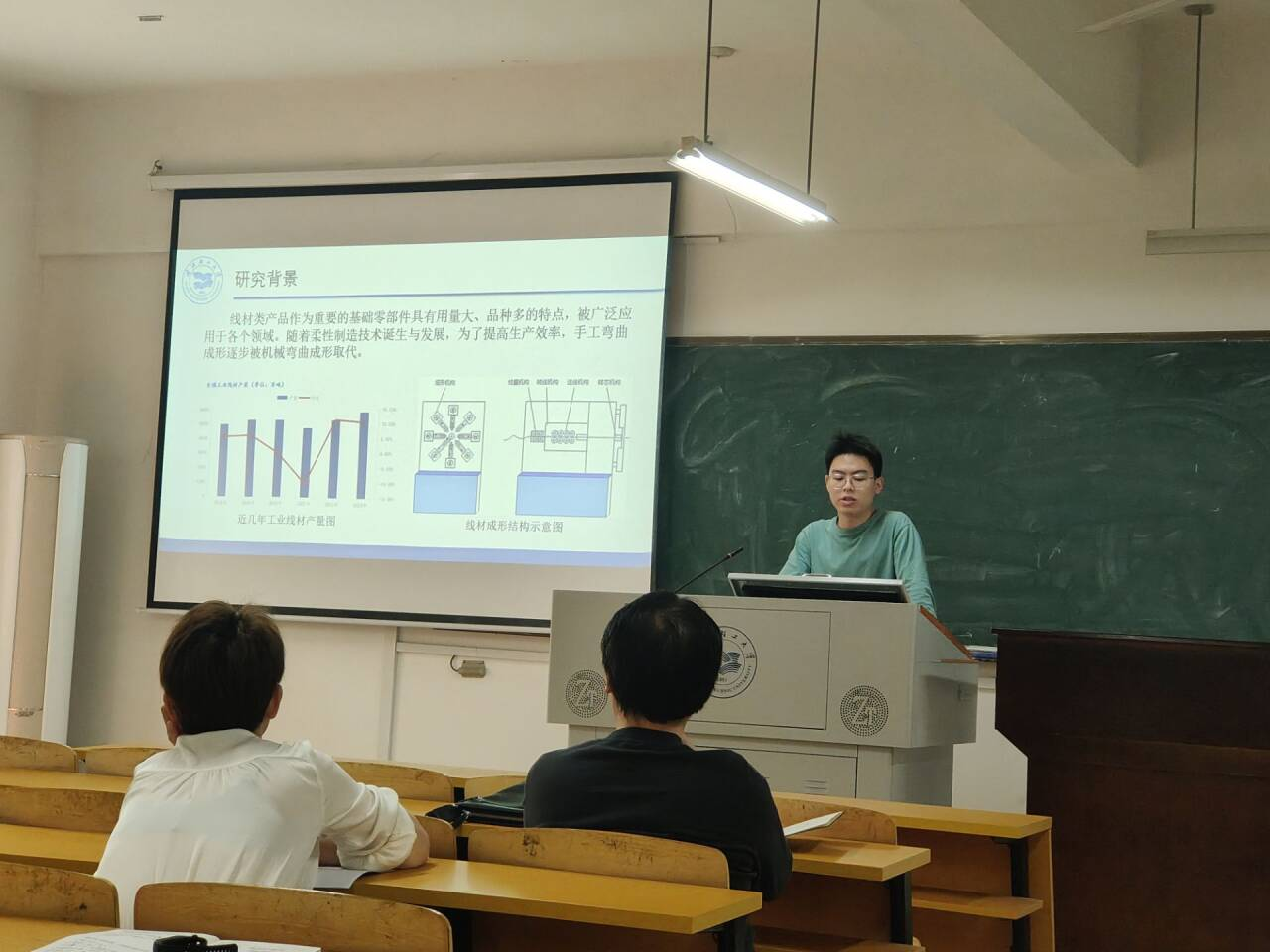 接着,李智同学进行了题为“加热丝的损伤机理及加工工艺研究”的汇报,从课题综述、研究现状、研究内容和创新点等方面展示了工作进展。宋少云老师提出,应将研究内容的重点放在损伤机理的选择上,并对中层材料的描述作进一步完善,同时详细列出国内外研究现状。张恒老师针对材料模型选择提出了质疑,特别是关于为何采用Johnson-Cook模型及其在此研究中的适用性问题,李智同学对此进行了详细解答。