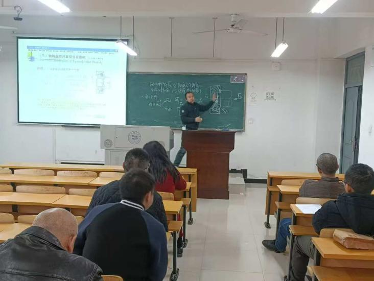 最后,由周红老师和杨军胜老师讲授公开课。周红老师讲授轴向载荷对轴承元件载荷分布的影响,主要介绍了轴承受力中接触角和派生轴向力的定义。杨军胜老师介绍了压杆失稳过程和临界压力的求解。