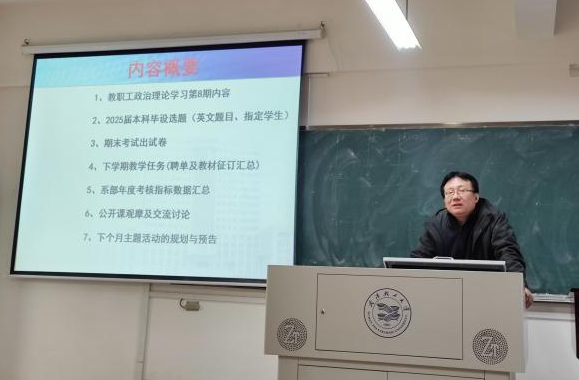 随后,尹强主任对2025届毕设课题工作、期末考试试卷工作进行了安排;各位老师要做好下学期教学的准备工作,关注聘单及教材征订汇总;关于系部年度考核指标完成情况,近期将对各老师本学期教学科研成果进行统计汇总。