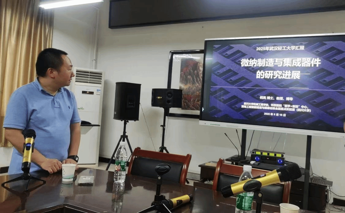 近日,四川大学“双百B”引进人才和四川省“特聘专家”何亮教授受邀来激光增材制造及其机电控制装备研究团队进行学术交流活动。本次活动由陈继兵老师主持,团队全体成员参会,共探学术前沿。何亮教授主要介绍了课题组在微纳制造与集成器件领域所取得研究进展,包括叠层结构微电极和微纳制造工艺,对于微纳功能单元在多功能器件中的集成,在性能提升和规模化制造方面有独特优势。
