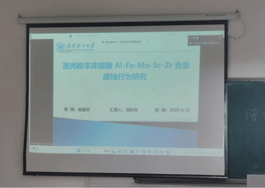▲刘衍丰同学介绍激光粉末床熔融Al-Fe-Mn-Sc-Zr合金腐蚀行为研究