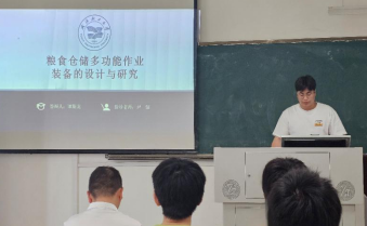 在学术汇报环节中,研究生谭斯龙作了题为《粮食仓储多功能作业装备的设计与研究》的专题报告。该项研究针对传统粮仓技术落后,智能化水平低,难以实现自动化、信息化、规模化等问题,设计了一种粮食仓储多功能作业装备,研究重点围绕复合型粮食仓储作业装备在平粮、翻粮及探测作业中的多功能集成化设计与实现,旨在推动粮食仓储作业向自动化、智能化与多元化方向发展。