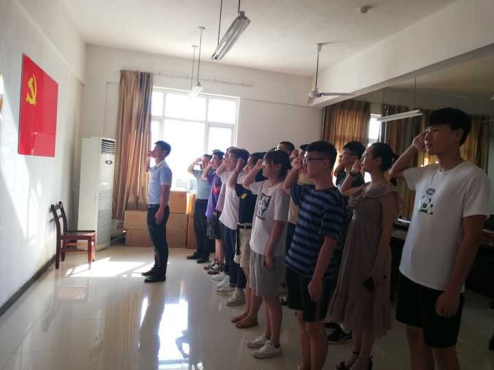 2019年7月1号是中国共产党98周年华诞,在这神圣的一天,为了使党员同学们不忘实心,牢记使命,公司党委组织本学期新发展党员举行宣誓仪式,活动由公司党委副书记刘凡主持,英国365集团网站全体新发展党员参加宣誓。