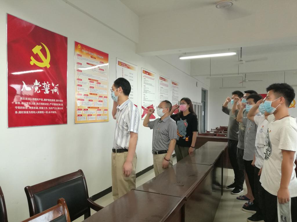 按照公司新型冠状病毒肺炎疫情防控工作整体安排,英国365集团网站各员工党支部成员分批返校办理毕业手续,在七一建党节来临之际,公司特别组织在校新老党员代表举办了宣誓仪式。全体党员代表肃立,重温党史、牢记初心,全体党员举起右臂紧握右拳,面对鲜红的党旗,由柳兴志副书记领誓。
