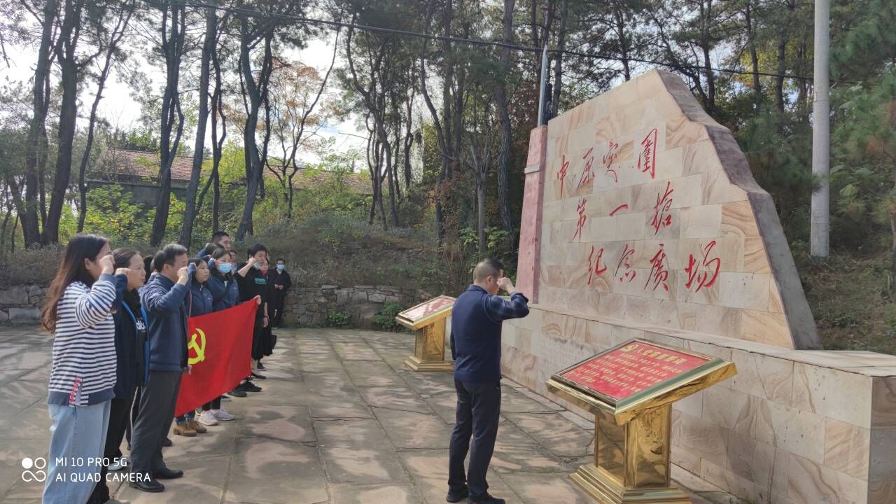 捐赠仪式后,所有成员来先来到孙家畈——新中国成立前中共湖北省委、省政府、省军区旧址,温习历史,勉励初心;再到磨山村,在中原突围第一枪纪念广场上,举起右拳,重温入党誓词。