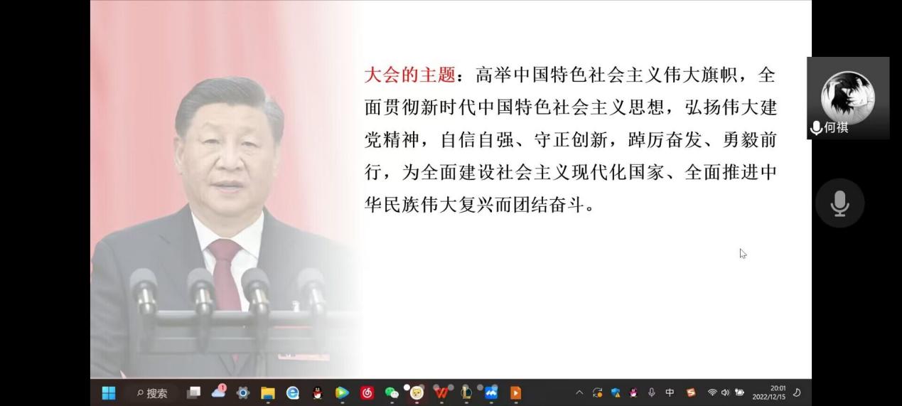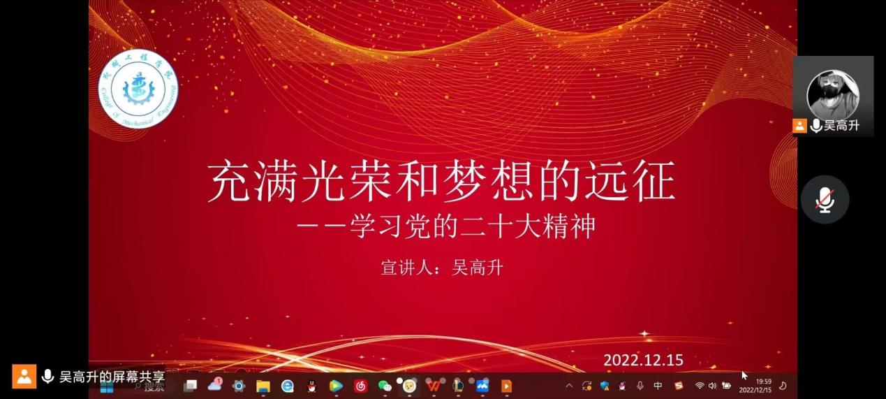 为深入学习贯彻宣传党的二十大精神,12月15日晚,英国365集团网站于线上开展二十大精神学习宣讲专题活动,公司分团委书记吴高升作二十大精神专题宣讲。英国365集团网站分团委、员工会、青年志愿者协会骨干成员参与。