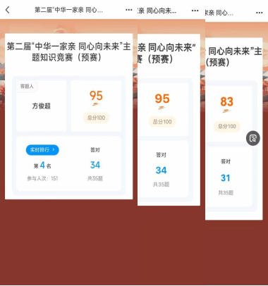 为激发员工学习统战知识的热情,公司在10月14日——10月19日组织员工积极参与“中华一家亲,同心向未来”知识竞赛活动,活动吸引了全院400余名员工参与,新生参与率达100%。此次活动不仅丰富了员工的统战知识储备,更在全院范围内营造了浓厚的统战工作氛围。